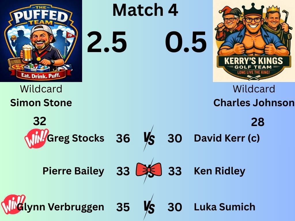Greg Stocks secured the Best Gross Score and 4th overall on his way to setting up a solid victory for his team, when combined with Glynn’s own 36pts and 3rd place overall finish they are emerging as the team to beat early on in the Autumn Sling.