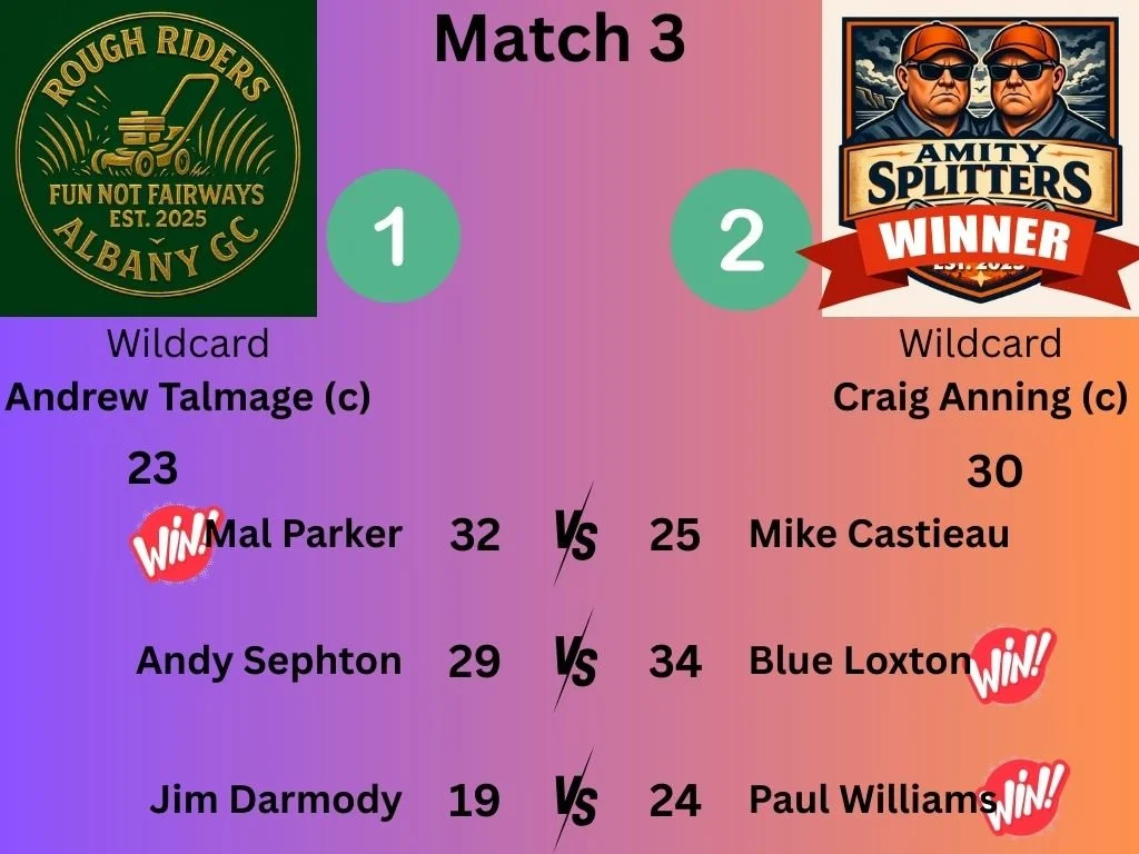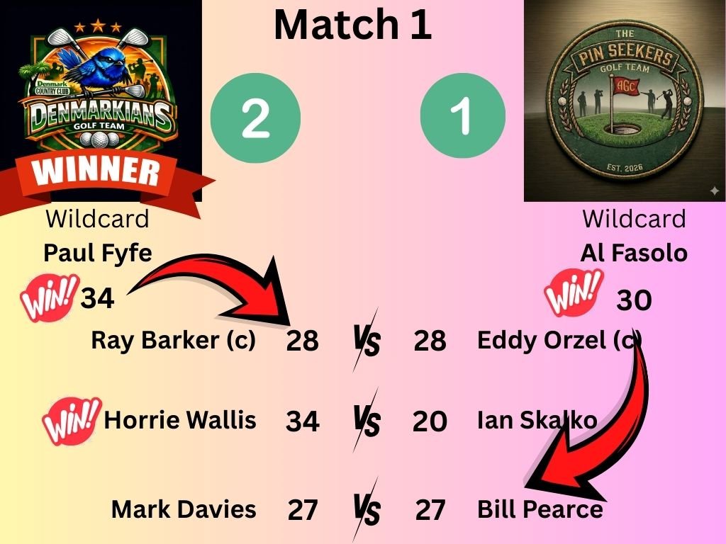 Horrie Wallis was the stand out getting his team the extra win, along with the two tied matches. The Wildcards each successfully turned one of the tied matches into a win, but ultimately neutralized each other, so that the Denmarkians emerged with a 2 - 1 Victory.
