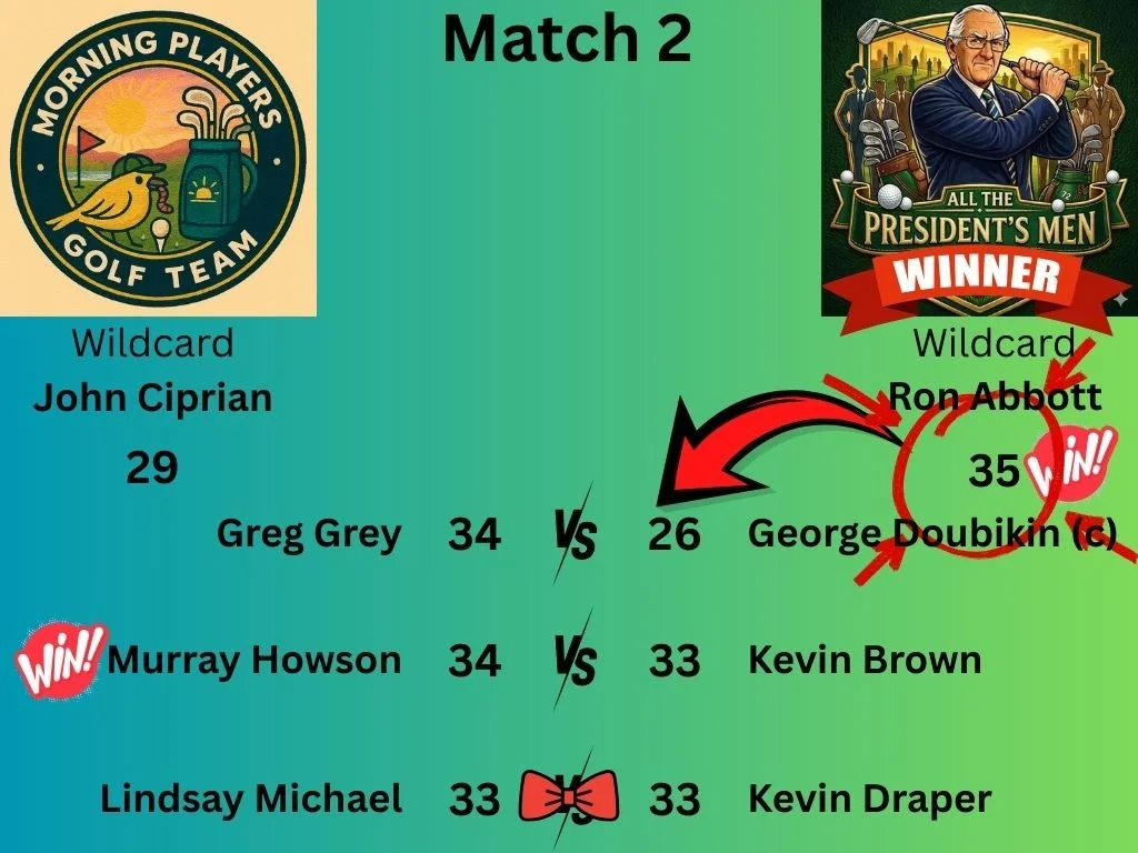 After an out of character sleep-in that saw them miss the first round, The Morning Players, were ready to make an impact. However, Ron Abbott managed to turn an initial 2.5 vs 0.5 score line into a 1.5 vs 1.5 draw. When there is a Draw the first order of countback is the Wildcard Score where Ron Abbott again had the goods to get the Win for his team.